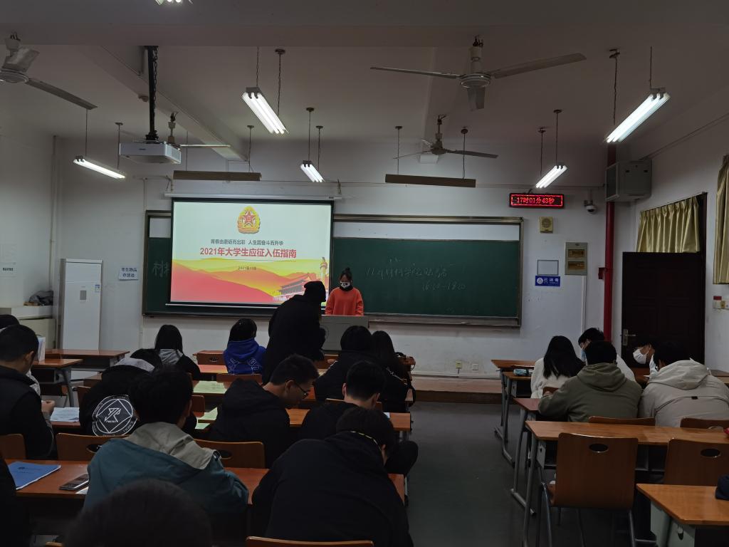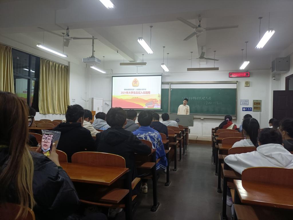 11月23日,胡老师在毕业年级政策宣讲过程中,为毕业生算了三笔账:一是“政治账”,老员工参军优待;二是“发展账”,毕业生参军入伍发展前景更广;三是“经济账”,国家为参军老员工补偿学费,减轻家庭负担。随后,从部队简介、入伍基本条件、入伍流程、老员工参军特别优惠政策和军营生活等方面做了简要阐述,鼓励同学们参军入伍,实现人生价值。