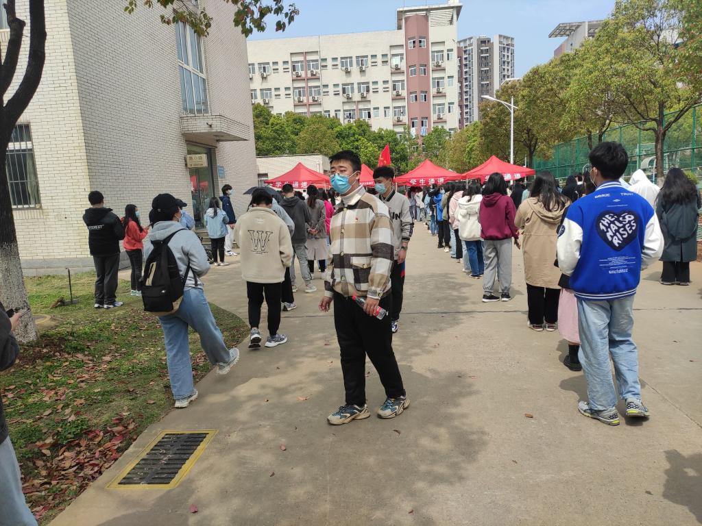 他们有的迅速到位后组织前来做核酸的员工保持一米安全距离有序排队,有的为忘记戴口罩的同学递上口罩,各司其职,互相帮助。第一时段采样结束后,他们又按要求奔赴下一个采样点。