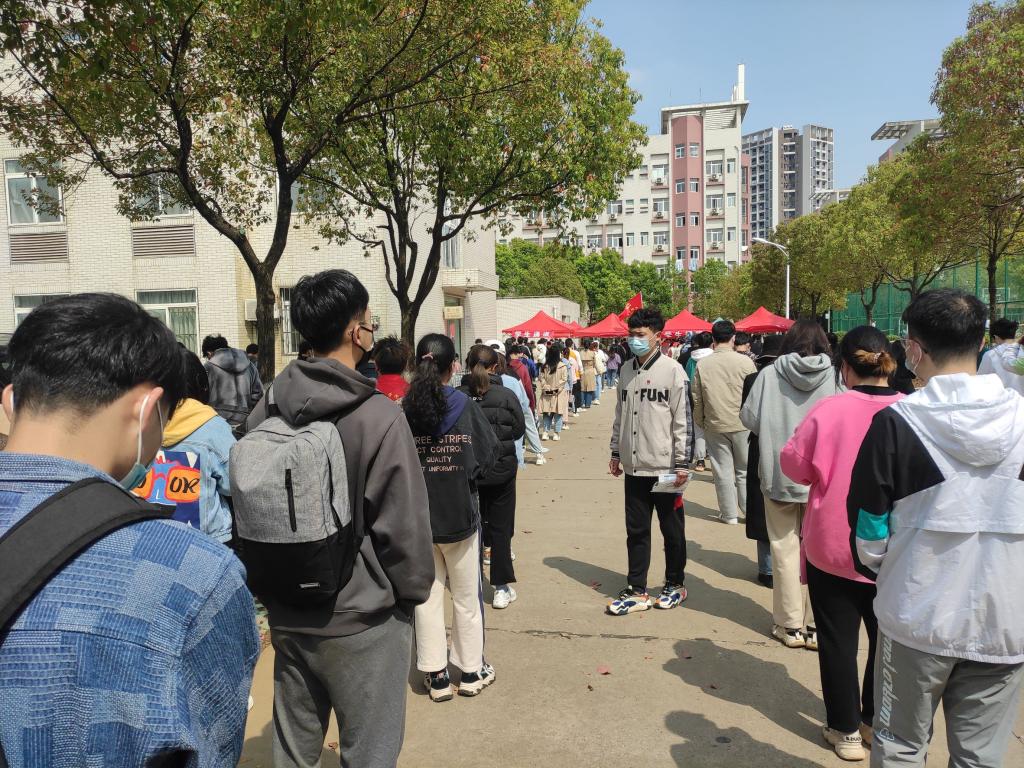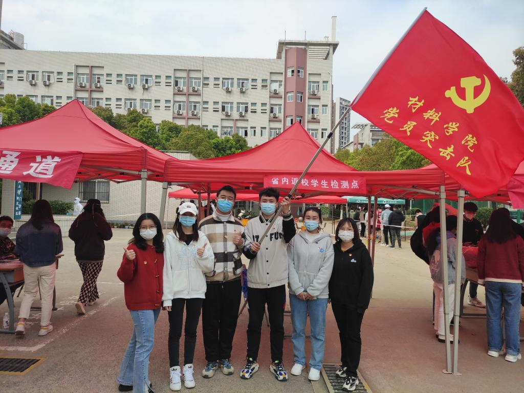 3月24日一大早,学院收到了上级全员核酸检测的紧急通知,需要1小时内安排好核酸检测的秩序维护志愿者,并迅速到达指定场地开展核酸检测服务工作。时间紧迫,低年级同学课业较满,毕业班同学忙于毕业设计和研究生复试,均无法满足长时间的志愿服务活动。公司党委迅速行动、广泛动员,各员工支部积极参与,火速组建了公司党员突击队,高分子11902班的刘昊冉自告奋勇,自荐担任突击队队长,主动扛起了突击队队旗,冲锋在前。